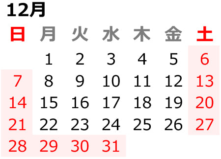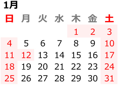 年末年始休業期間中のご注文は1/5より順番にご対応致します。