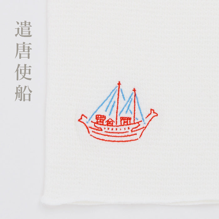 Embroidery patterns: Daibutsu, Mother Deer and Fawn, Golden Kite,Narazuke, Persimmon Leaf Sushi, Envoy Ship to Tang Dynasty China, Lapis Lazuli Cup in the Shosoin Repository