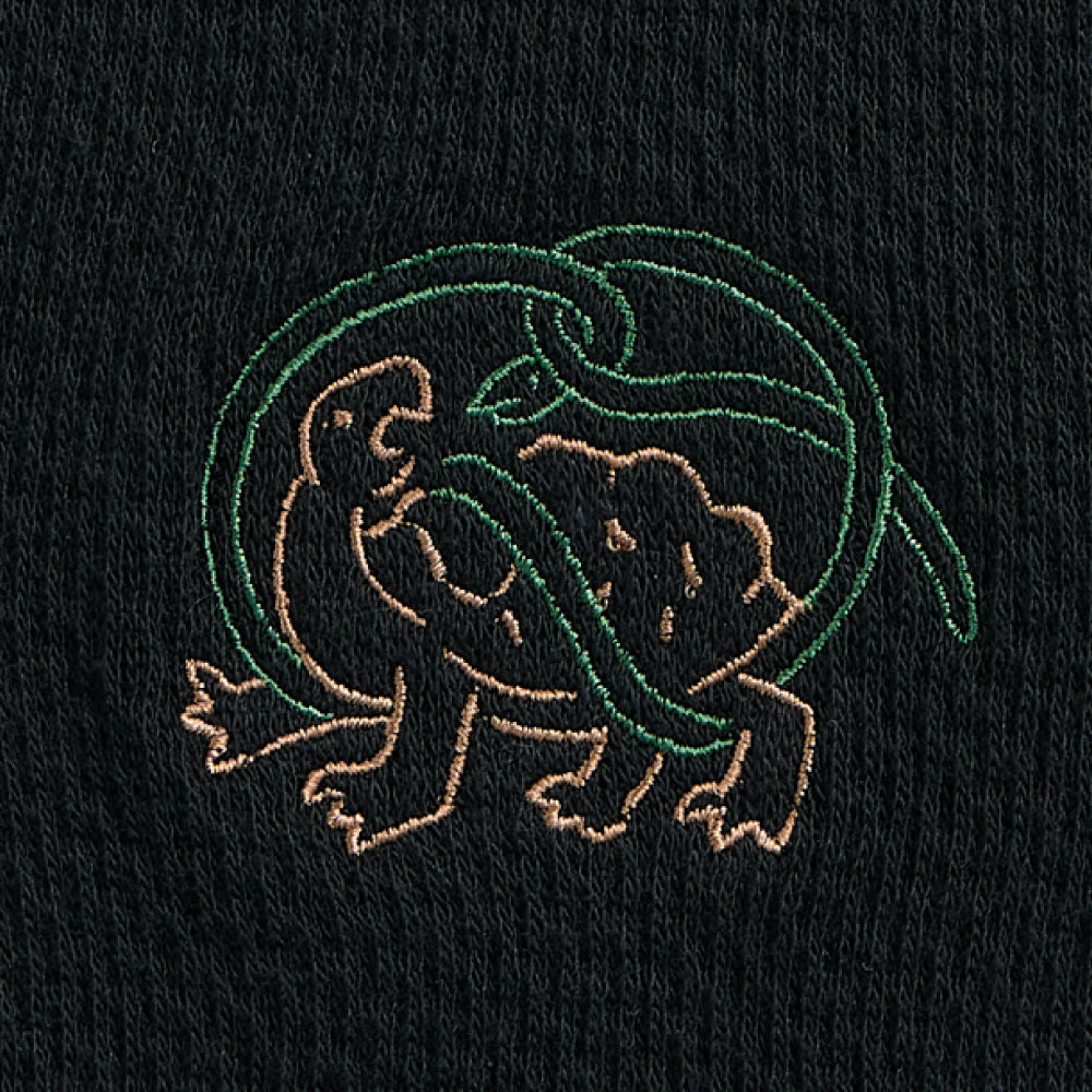 The Black Tortoise, who rules over winter, protects the northern direction. The color black represents darkness. The Black Tortoise is a long-legged tortoise entwined with a snake, said to represent the underworld, the realm of the dead, and the psyche of the cosmos itself. It is a symbol of longevity and offers protection against disease.