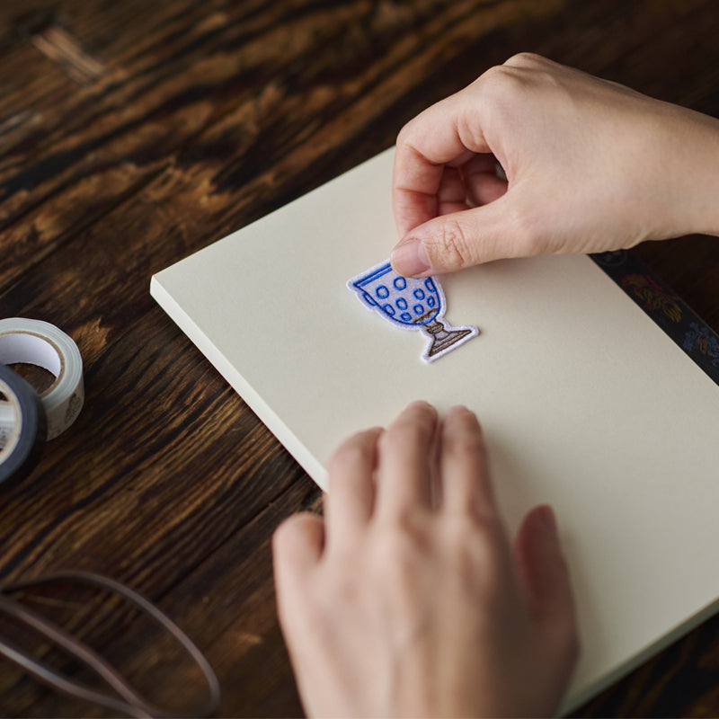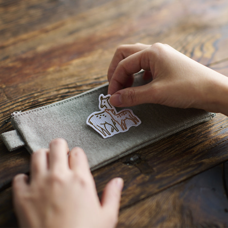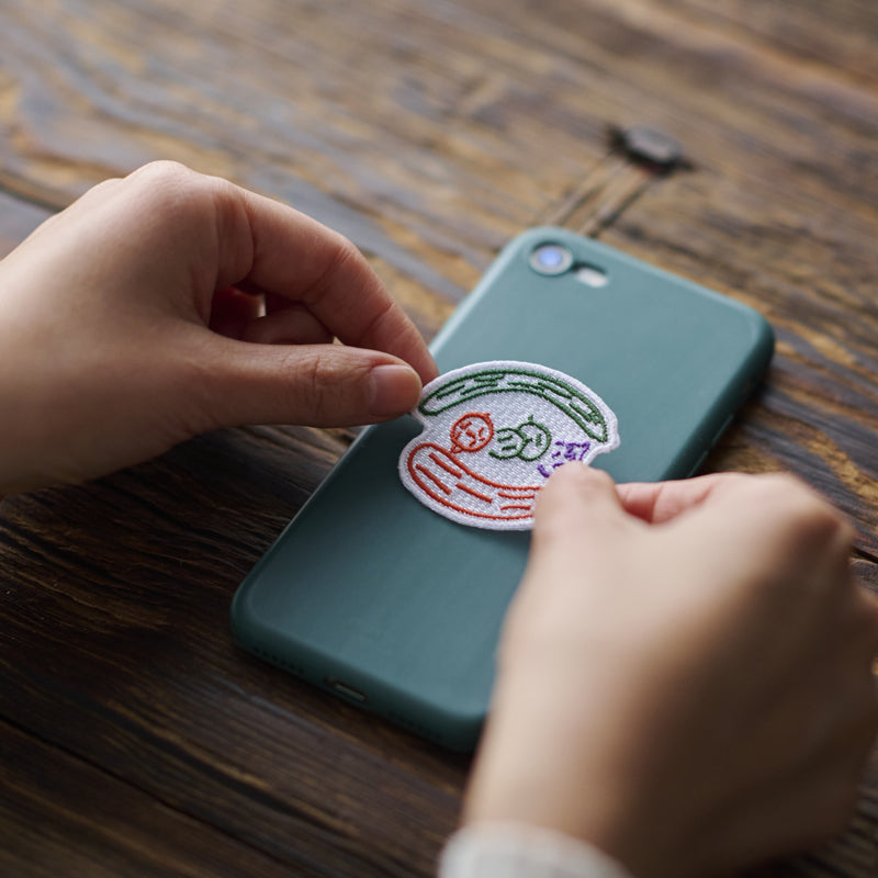 Le motif brodé du chauffe-ventre super fin Naramaki a été transformé en un patch autocollant.